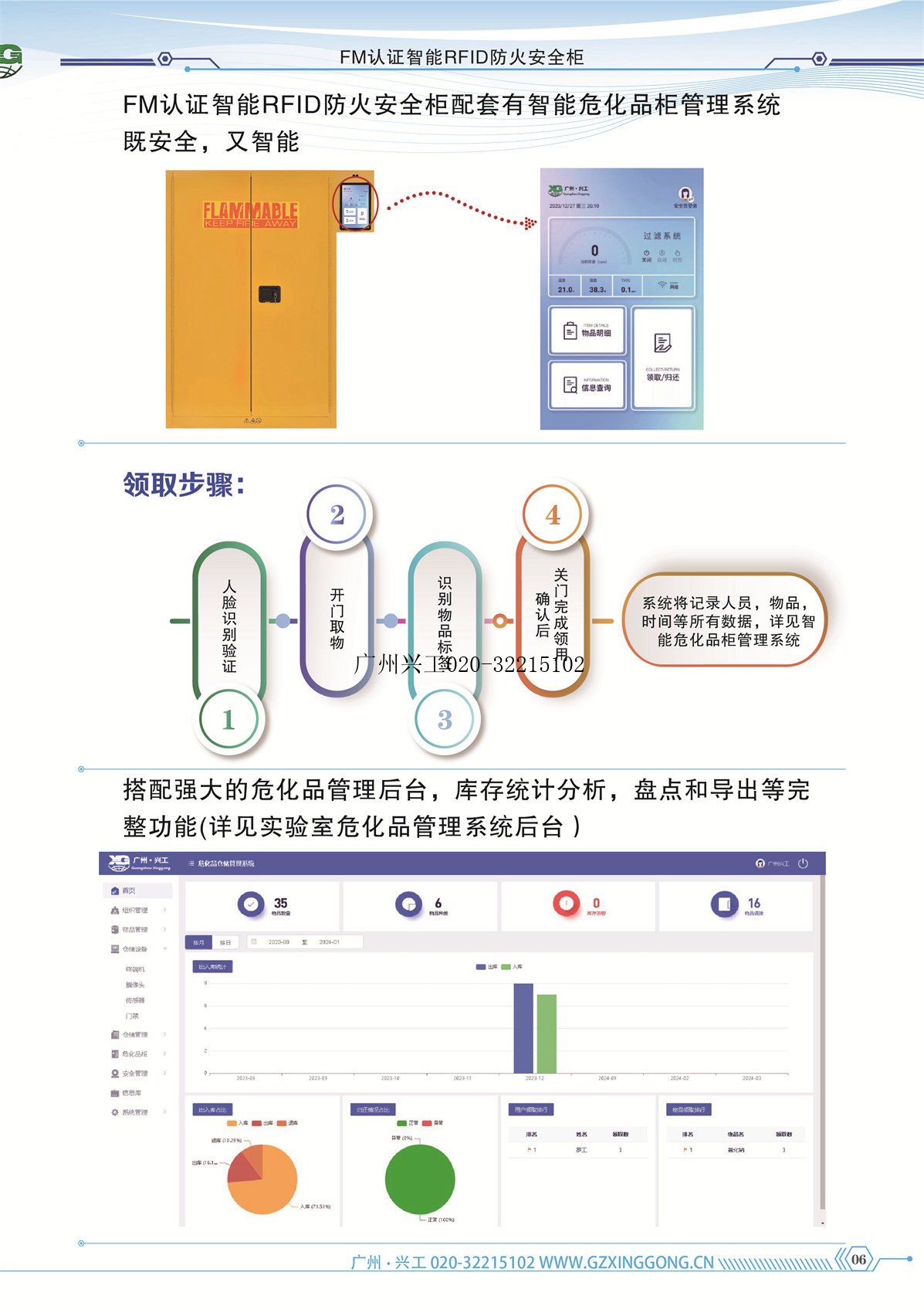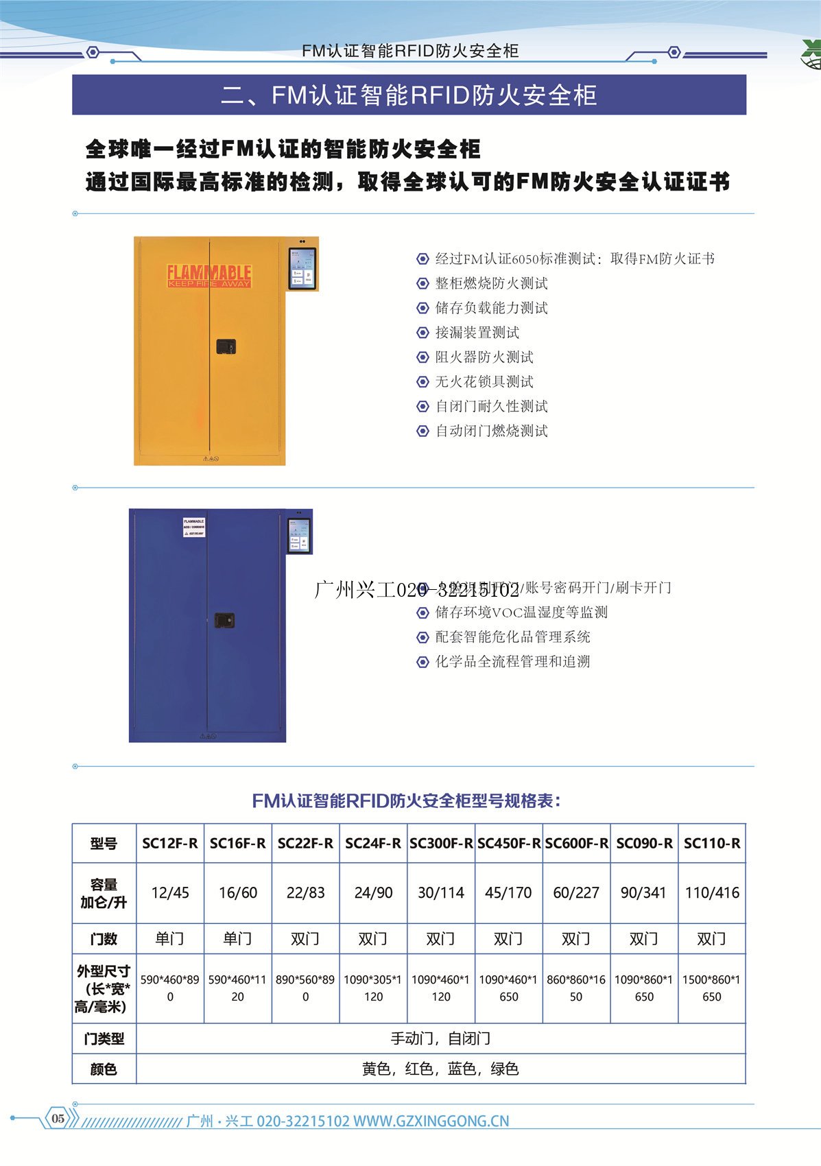 FM认证智能RFID防火安全柜又叫智能防火安全柜,RFID智能防火安全柜,智能防爆柜,智能防火柜,RFID防火防爆柜,智能防火防爆柜等,是按照消防协会和安全与健康管理局的要求和规定,结合RFID物联网技术设计和生产的一款智能易燃液体储存柜;这款产品通过FM测试和认证,符合最严苛的易燃液体储存测试标准之一的FM6050标准。是一款防火安全且智能化的防火防爆柜;